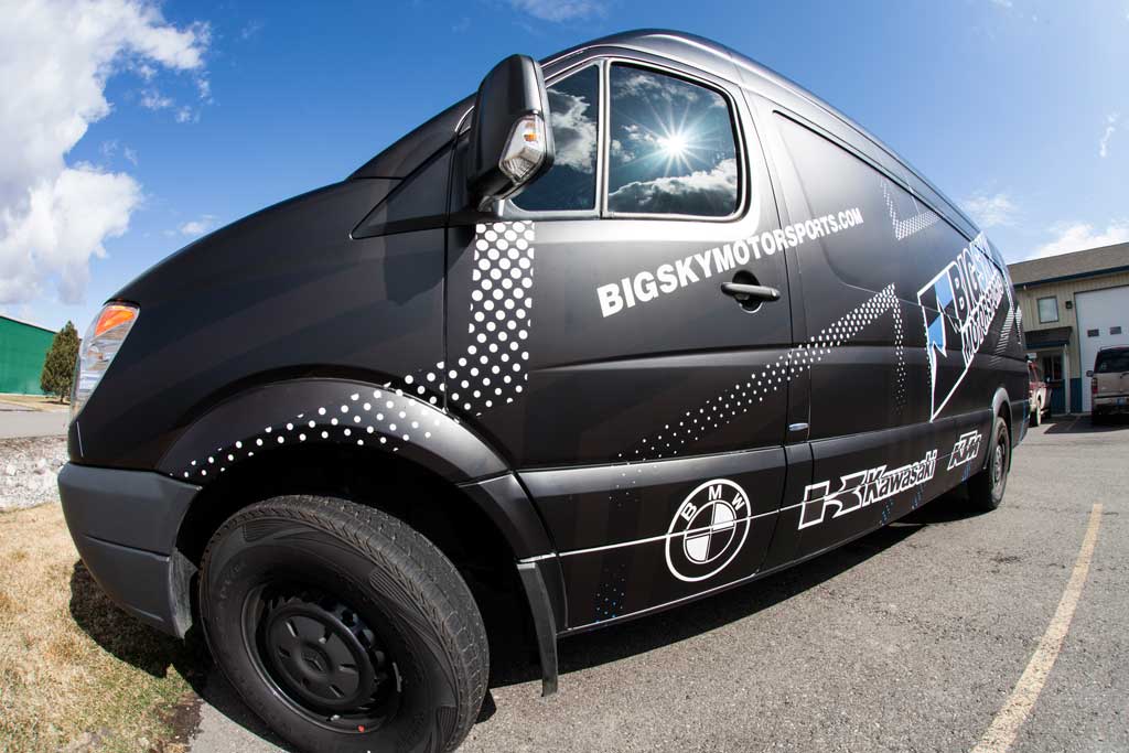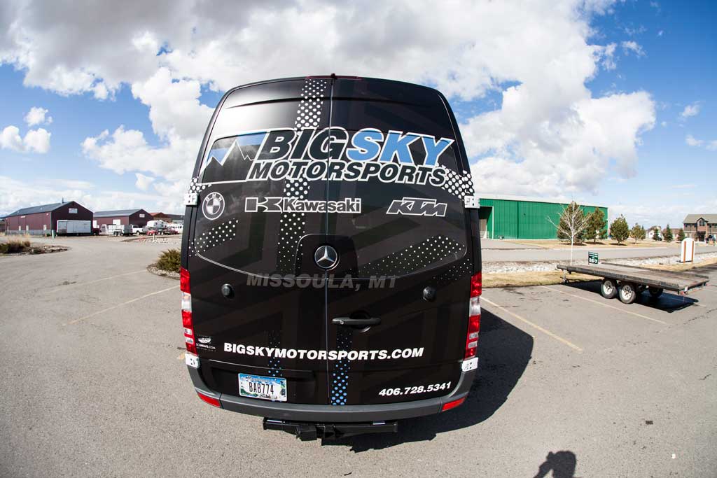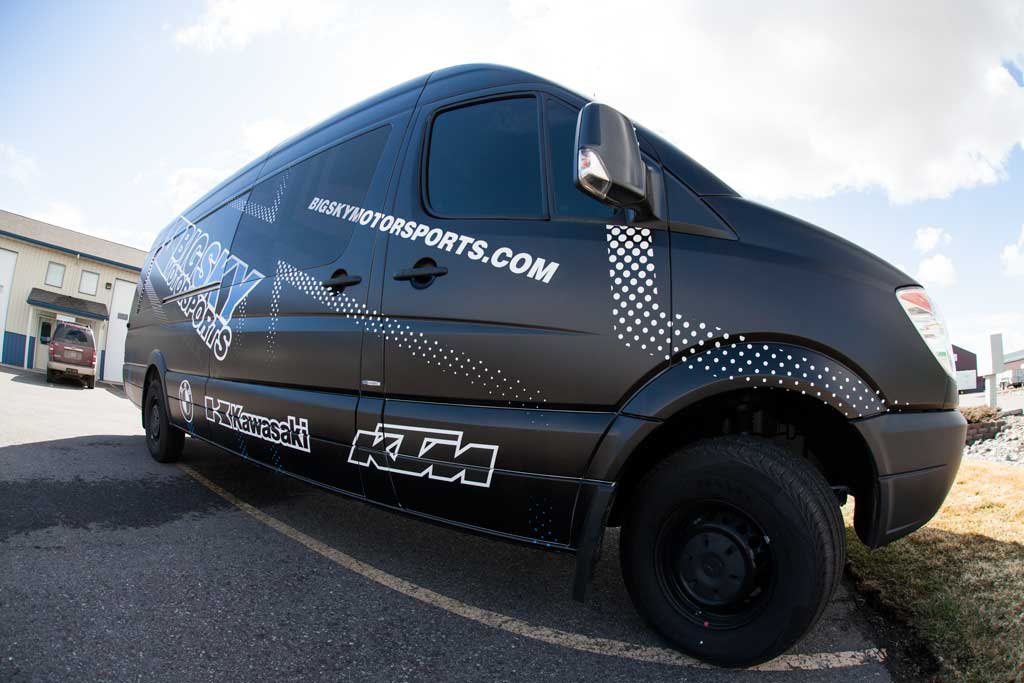 Big Sky Motorsports, Montana’s Motorcycle Headquarters, is utilizing the marketing space available on their all-new Dodge Sprinter Van by fully wrapping it! The team from BSMS came to SCS recently and wanted to transform this standard, white Sprinter Van into an eye-catching, race-type, looking vehicle. The SCS Wraps design team developed a look that could not have pleased our client any more. The end result is a completely new looking vehicle that is benefiting Big Sky Motorsports 24/7/365. This vehicle will be out supporting local races in Montana and other regional stops so please keep your eye out so that you can see the impact that this vehicle wrap really has. If you are interested in transforming a company vehicle into a great advertising piece, please do not hesitate to contact SCS Wraps today at 406-585-2635 or [email protected].