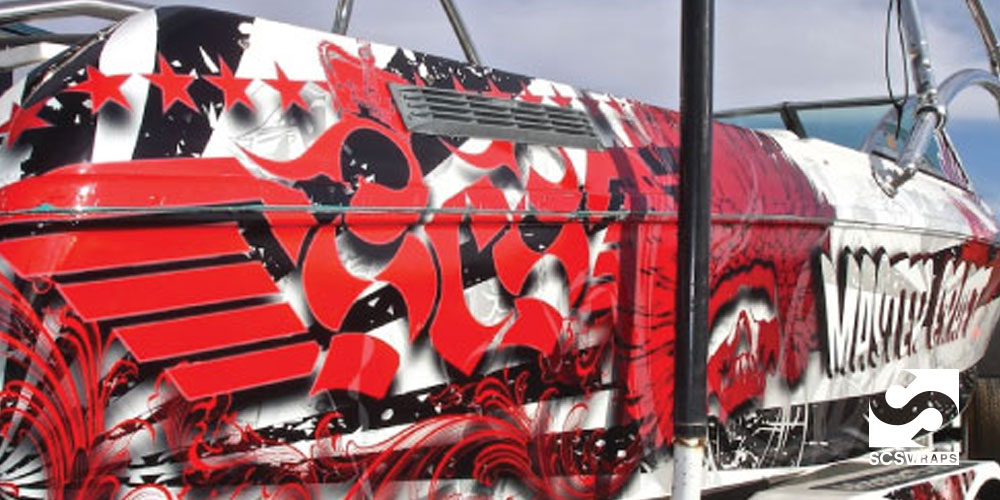 When this 1992 MasterCraft skiboat appeared on the doorstep of SCS Wraps, we had one very clear mission; complete overhaul with a custom designed SCS boat wrap. After inspiration for the boat wrap was determined, our team went to work designing, printing and installing this one of a kind SCS boat wrap.