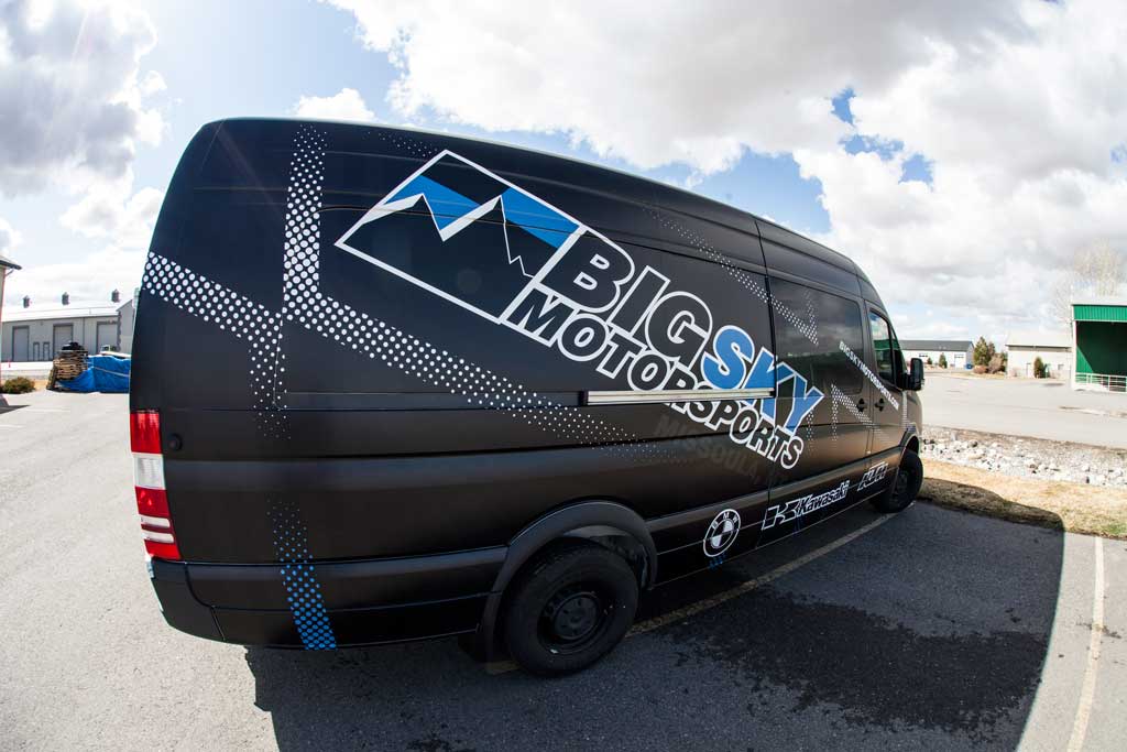 Big Sky Motorsports, Montana’s Motorcycle Headquarters, is utilizing the marketing space available on their all-new Dodge Sprinter Van by fully wrapping it! The team from BSMS came to SCS recently and wanted to transform this standard, white Sprinter Van into an eye-catching, race-type, looking vehicle. The SCS Wraps design team developed a look that could not have pleased our client any more. The end result is a completely new looking vehicle that is benefiting Big Sky Motorsports 24/7/365. This vehicle will be out supporting local races in Montana and other regional stops so please keep your eye out so that you can see the impact that this vehicle wrap really has. If you are interested in transforming a company vehicle into a great advertising piece, please do not hesitate to contact SCS Wraps today at 406-585-2635 or [email protected].